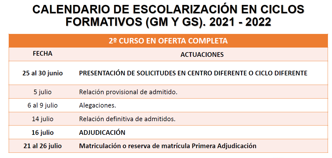 Matriculación de alumnado admitido en 2º CURSO Ciclos Formativos