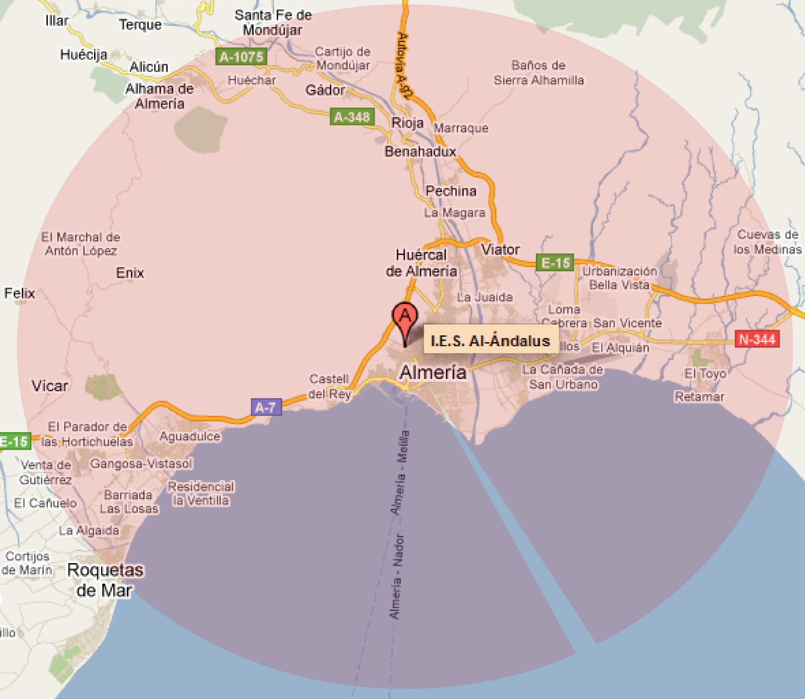 La procedencia del alumnado escolarizado en el I.E.S. varía dependiendo de los estudios que curse. Así, para F.P. la escolarización depende del distrito único andaluz, por lo que la procedencia es muy diversa. Mientras que el alumnado de E.S.O. proviene de la propia zona de escolarización que se extiende desde Puerta Purchena hasta el Barrio de la Fuentecica y entre el Cerro San Cristóbal y la Plaza de Toros de Almería. Para Bachillerato, además de la zona anteriormente mencionada, el Centro recibe alumnado del municipio de Pechina por estar adscrito a nuestro centro el I.E.S. Puerta de Pechina.